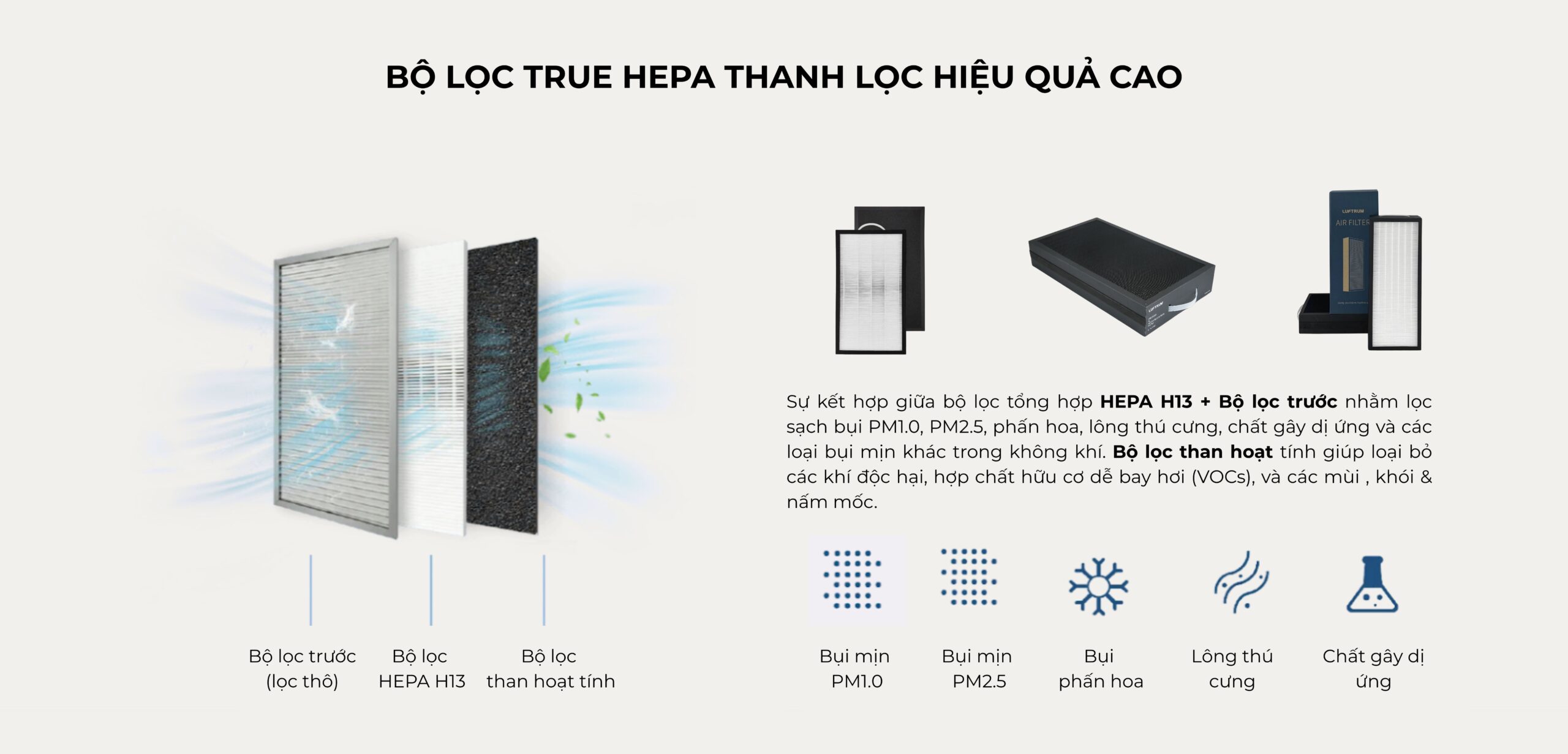 Bộ lọc True HEPA tích hợp than hoạt tính